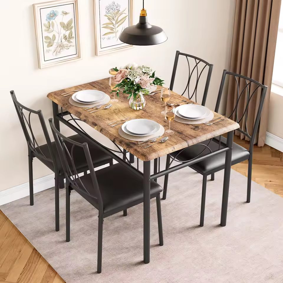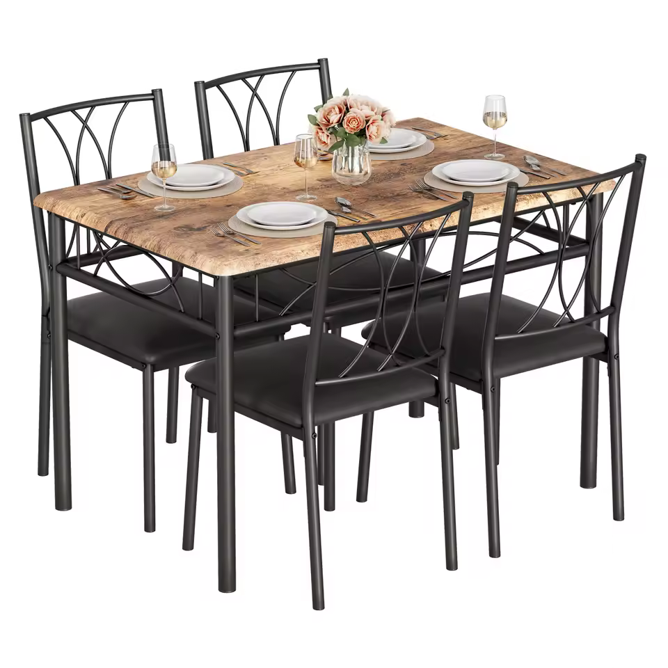【Space-saving Design】The industrial-style kitchen table set includes 1 table and 4 chairs, and the chairs can slide under the table to save space and create a neat atmosphere. Table size: 43.3 inches long x 27.6 inches wide x 30 inches high; Chair size: 16 inches long x 15 inches wide x 36 inches high.